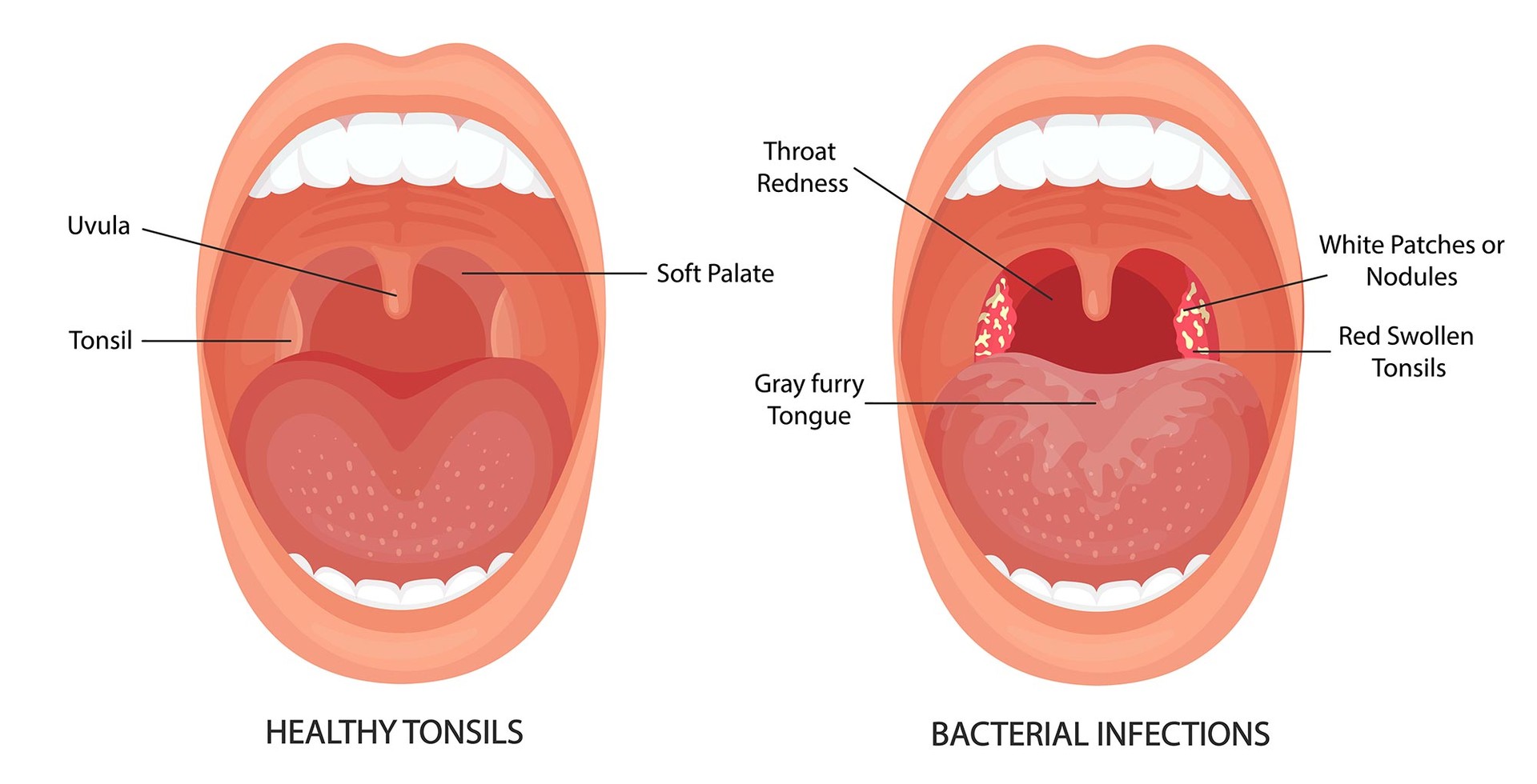 목 안쪽과 코의 뒷부분에는 세균과 같은 외부 침입으로부터 1차적인 방어를 담당하는 림프 조직들이 있습니다.